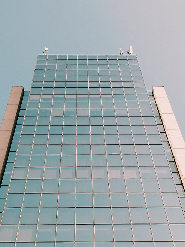 - "A modern skyscraper rises against a pale blue sky" by FM-ZqBmD2, licensed under CC BY 4.0