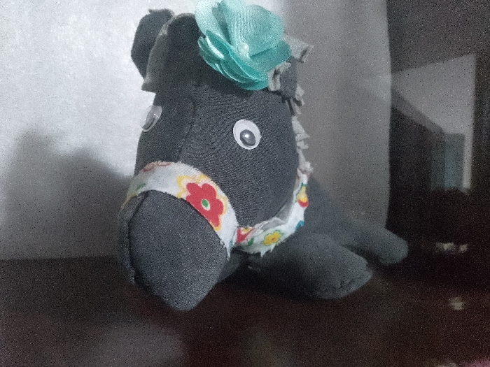 - "The image displays a dark grey, fabric-based plush toy, resembling a stylized equine, situated indoors in Krasnogorskoye, Russia" by FM-zZnPi1, licensed under CC BY 4.0