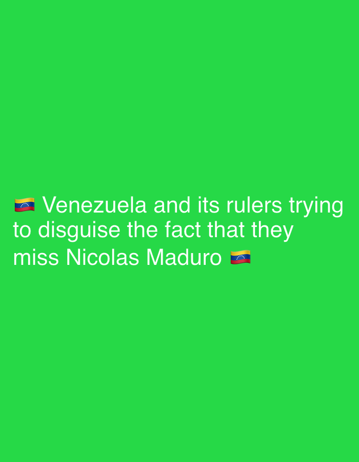 A green background displays text stating "Venezuela and its rulers trying to disguise the fact that they miss Nicolas Maduro". The text is accompanied by the Venezuela flag emoji at the beginning and end of the statement.