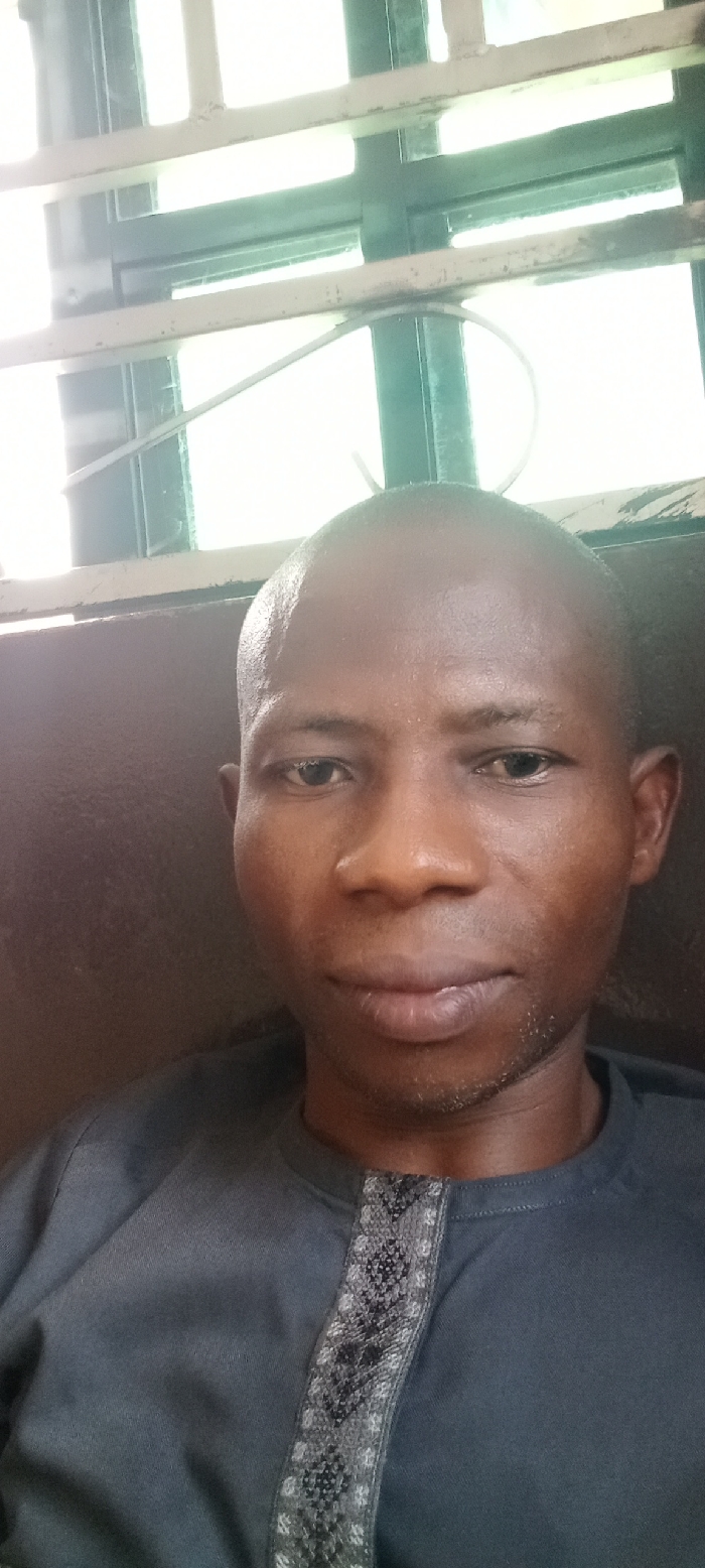 An adult male of African descent is depicted in a close-up, head-and-shoulders portrait taken indoors in Lokoja, Nigeria