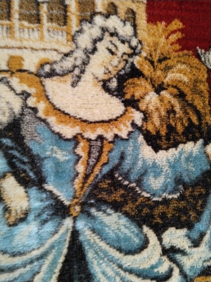 - "A close-up photographic detail of a high-pile textile artwork, located in Sucina, Spain, depicts an individual in period attire" by FM-3LPUP2, licensed under CC BY 4.0