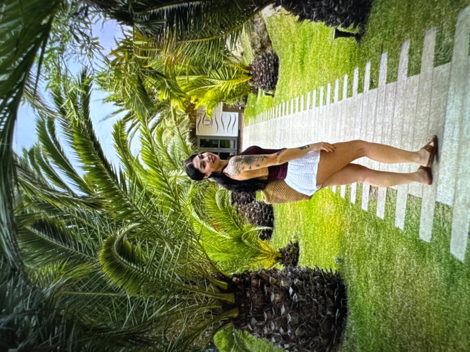 - "A female individual stands on a rectangular slab pathway within a lush, tropical garden setting" by FM-vbk9k1, licensed under CC BY 4.0