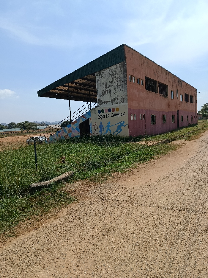 - "A wide-angle, daylight exterior view in Bwari, Nigeria, depicts a two-story rectangular building identified as a "Sports Complex" by FM-9W5842, licensed under CC BY 4.0