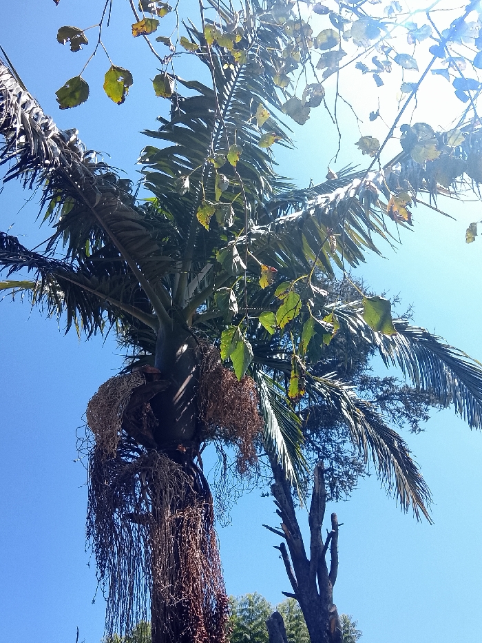 - "An outdoor scene in Bernal Este, Argentina, displays a close-up, upward-angled view of a large palm tree against a clear blue sky" by FM-tjYI33, licensed under CC BY 4.0
