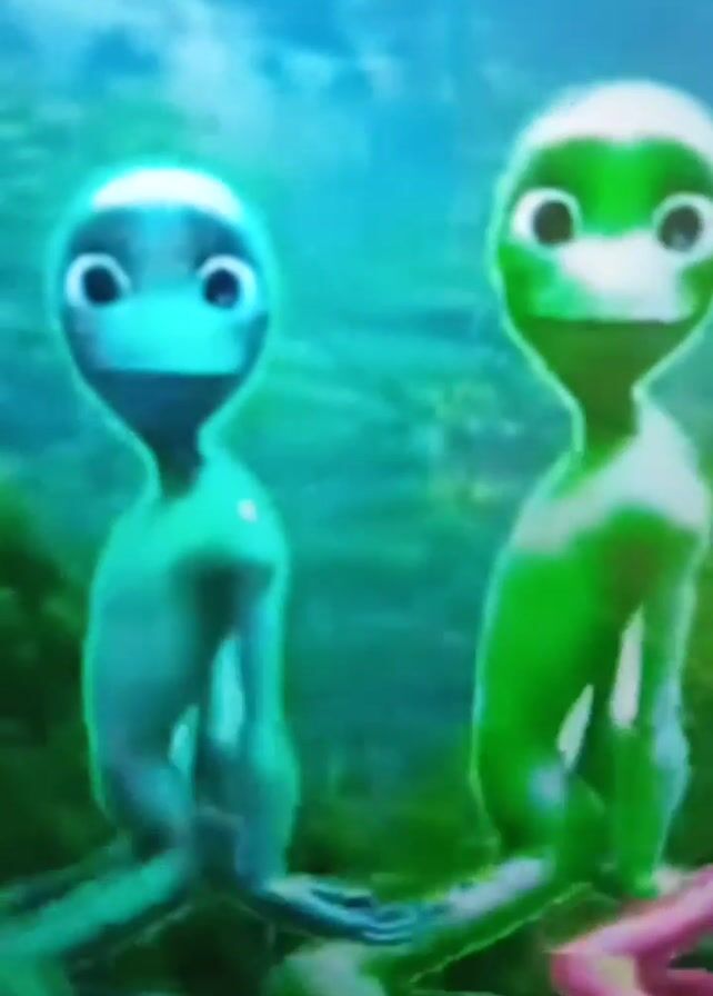 vertically oriented screen recording of a video featuring animated, alien-like figures