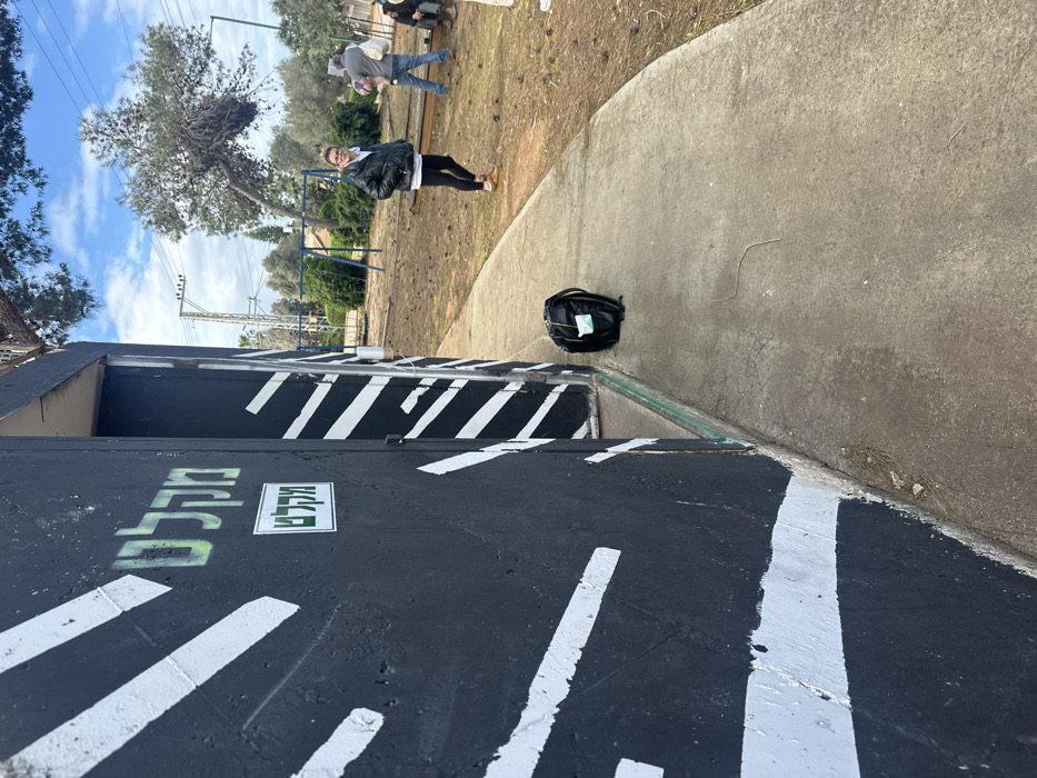 The image depicts an outdoor scene in Beit Yitshak Sha'ar Hefer, Israel