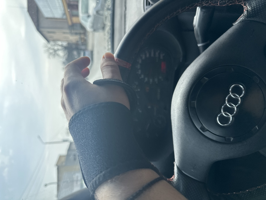 - "A forensic examination of the image reveals a first-person perspective from inside an Audi vehicle, indicated by the prominent four-ring logo on the black steering wheel" by FM-shjOA2, licensed under CC BY 4.0