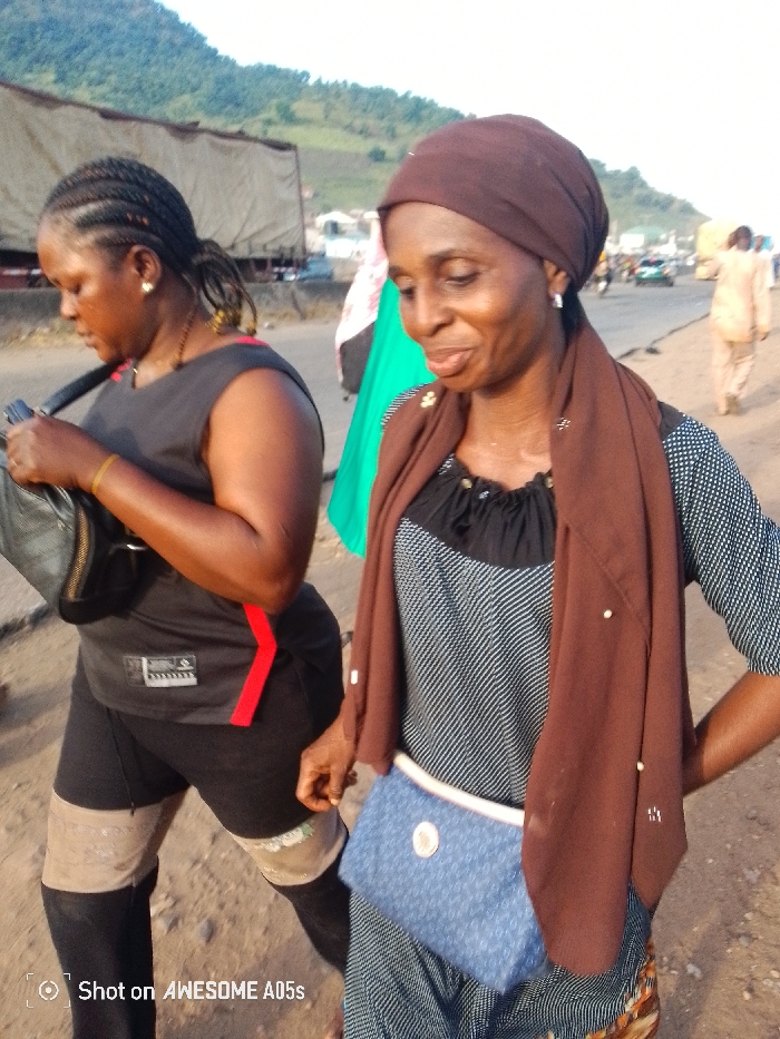 The image depicts an outdoor roadside scene in Lokoja, Nigeria