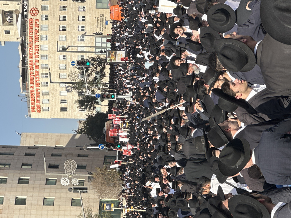 - "This image captures a large daytime gathering of several thousand Haredi Jewish men on a street or plaza in Jerusalem, Israel" by FM-RIphO2, licensed under CC BY 4.0