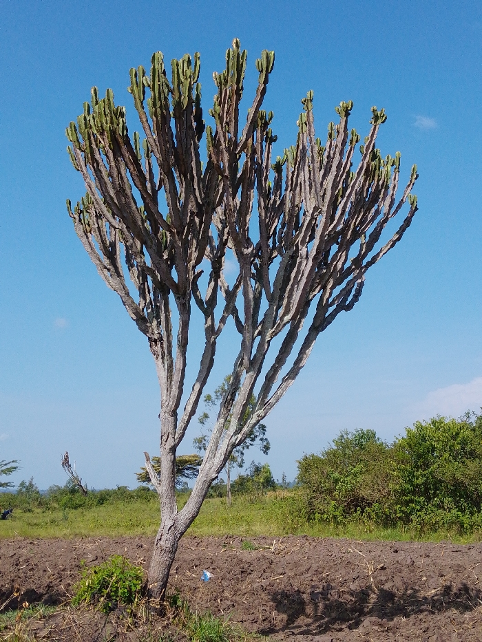 - "A candelabra tree stands prominently against a clear blue sky in a field of tilled soil" by FM-iEg4i1, licensed under CC BY 4.0