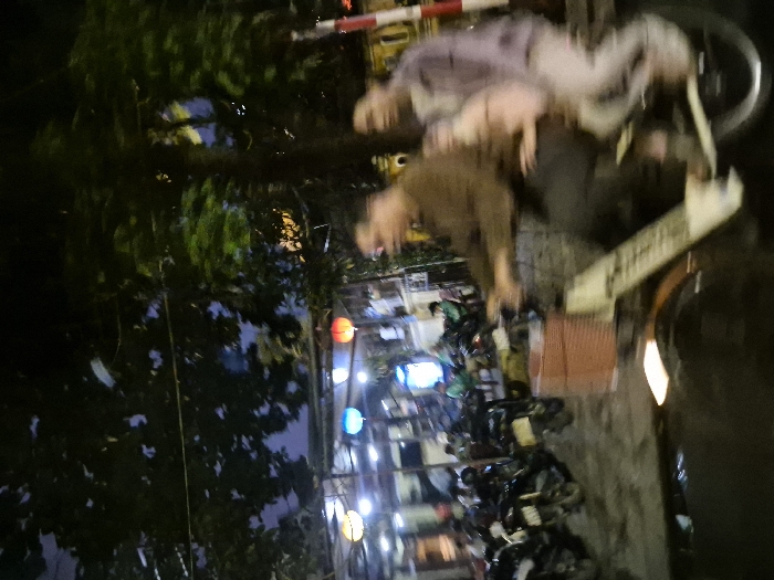 The image captures a nighttime street scene in Hội An Ward, Vietnam