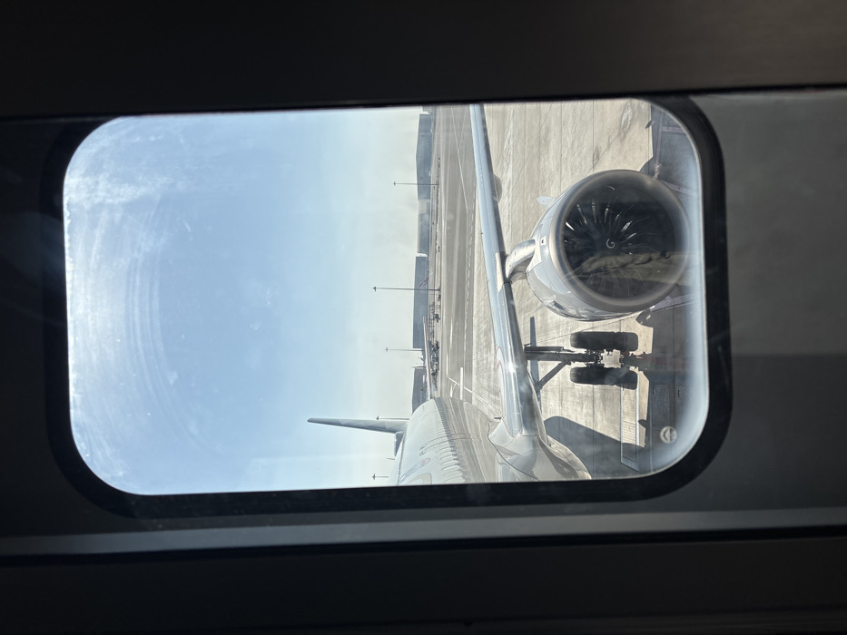 - "A view from an aircraft cabin window depicts an airport tarmac scene in Al Matar, United Arab Emirates, under a clear, sunny sky" by FM-wUaYc2, licensed under CC BY 4.0