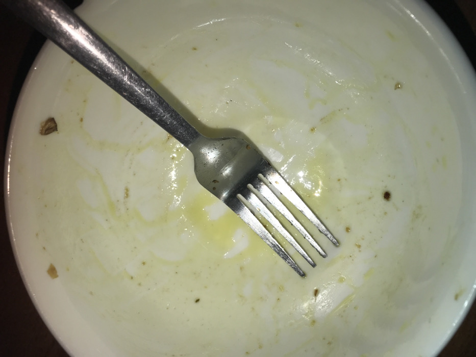- "This image, captured in Galadimawa, Nigeria, displays an overhead view of a white, shallow ceramic bowl containing residual food matter" by FM-HcLdJ2, licensed under CC BY 4.0