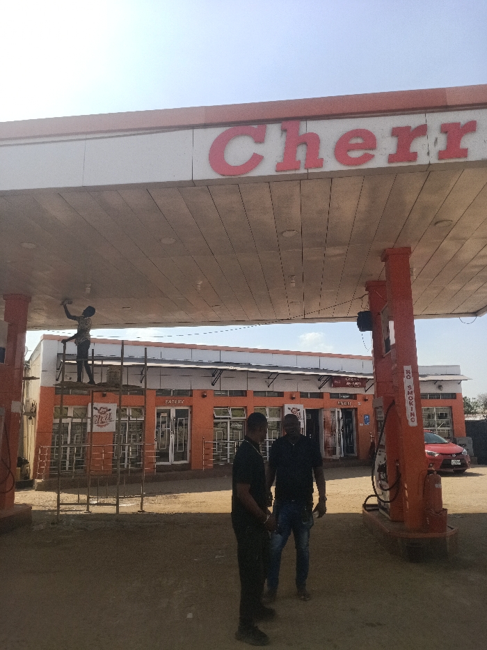 A daylight scene at a "Cherr" branded gas station in the city of Unknown, Unknown