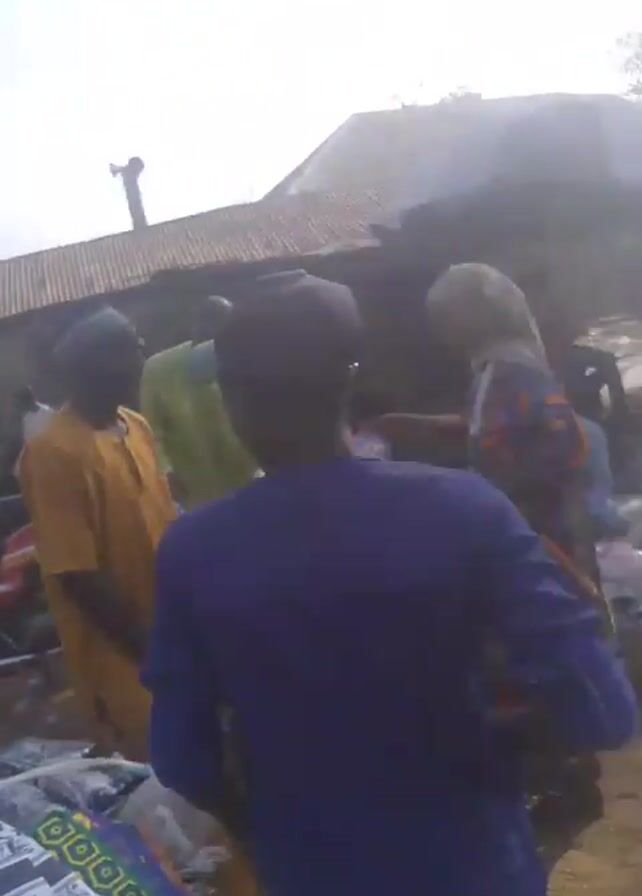 The video depicts an outdoor market setting with numerous individuals. Many people are dressed in traditional clothing. Some vendors have set up stalls under umbrellas. The ground is dirt, and there is visible litter. People are shopping, browsing merchandise, and walking through the market. A woman carrying a child on her back is visible in the first shot. The video gives a sense of a busy and lively market atmosphere.