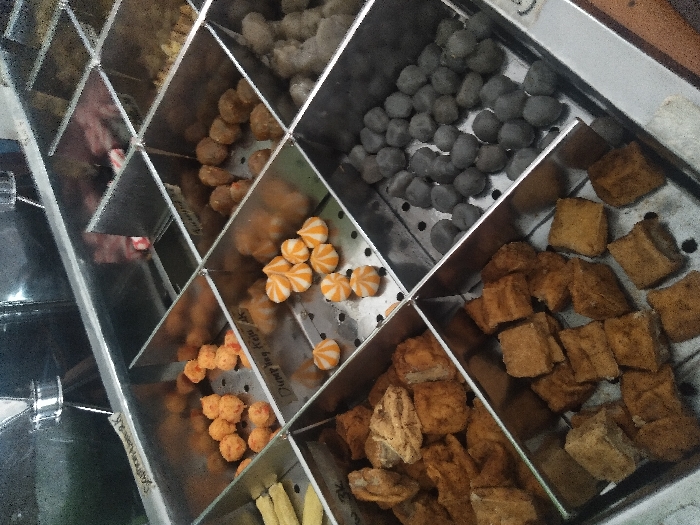 - "This image, captured in Cianjur, Indonesia, presents a close-up, top-down view of a stainless steel food display unit, likely a warmer or steamer, containing multiple compartments of various prepared food items" by FM-lcyaM2, licensed under CC BY 4.0