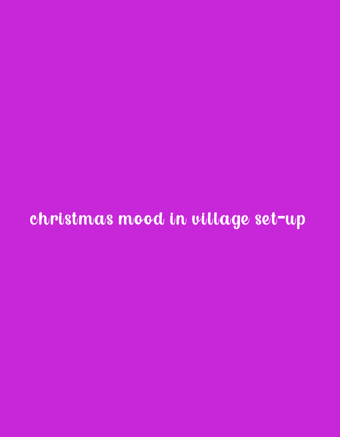 The image displays a solid, uniform magenta-purple background. Centered horizontally and positioned in the lower middle third of the frame, white text in a cursive or handwritten-style font reads: "christmas mood in village set-up". No other subjects, objects, people, actions, or environmental details are visible. The image does not depict the city of Lumakanda ward, Kenya.