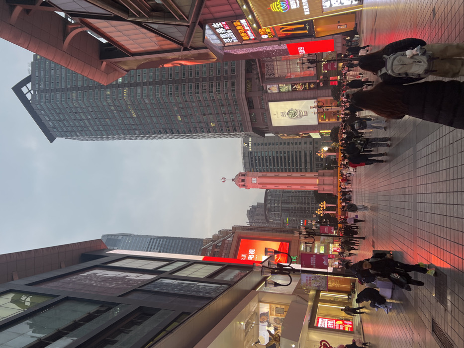 - "The image displays an urban pedestrian street scene at dusk or early evening, located in Jiefangbei Pedestrian Street, Yuzhong District, Chongqing, China" by FM-KHzZx1, licensed under CC BY 4.0