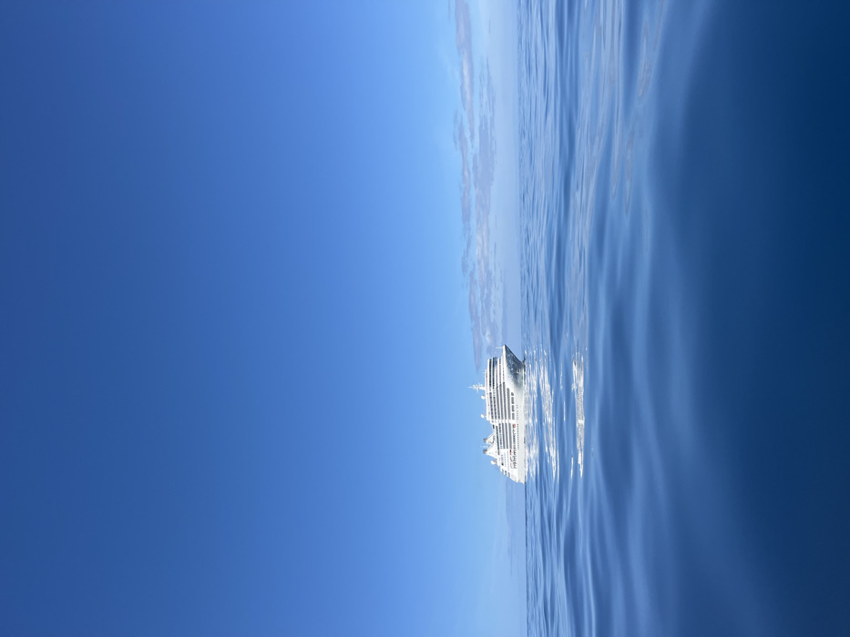 - "A large, white cruise ship sails on a tranquil ocean under a clear blue sky" by FM-R1zri2, licensed under CC BY 4.0