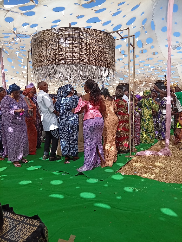 - "An outdoor social gathering is depicted in Kerang, Nigeria, beneath a white fabric canopy perforated with numerous holes through which the blue sky is visible" by FM-yrWiZ2, licensed under CC BY 4.0