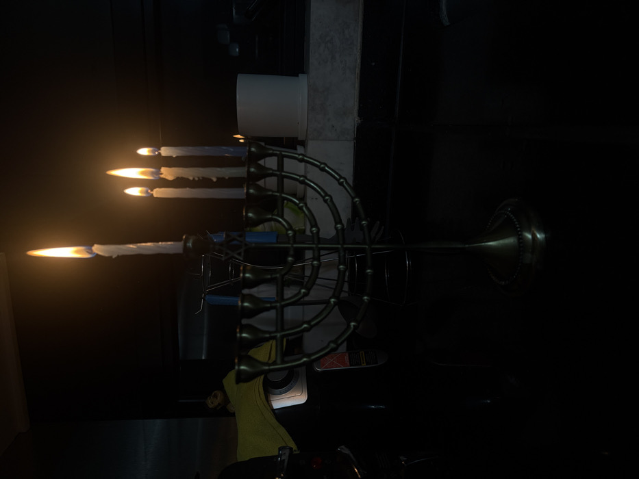 - "A partially lit Hanukkah menorah sits on a dark surface" by FM-x6Qwo1, licensed under CC BY 4.0