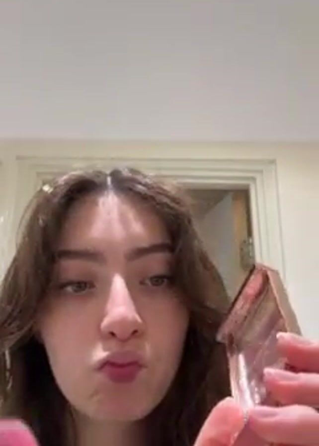 Here's a detailed description of the video: A young woman with shoulder-length, wavy brown hair is the central focus