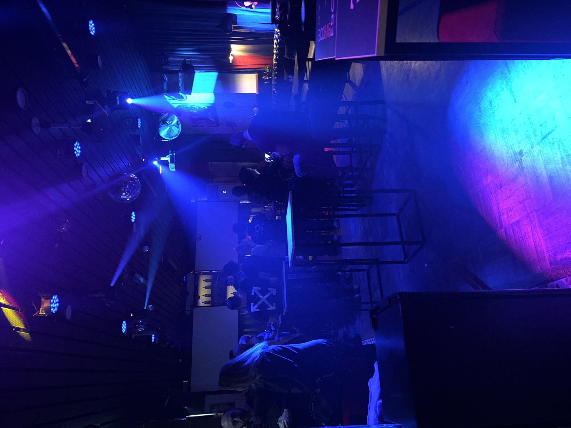 The image depicts the interior of a bar or club, possibly in Burgas, Bulgaria, based on visual details