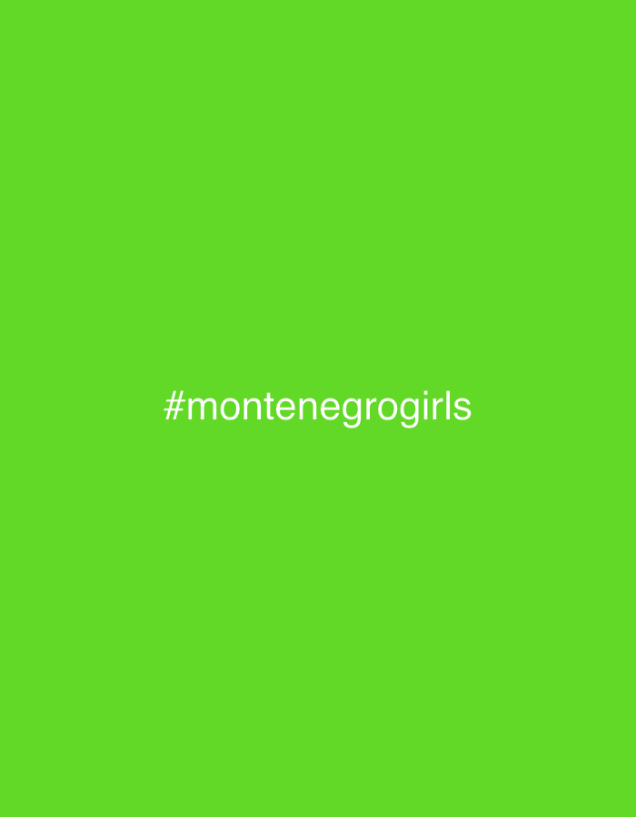 A solid green background dominates the image. In the center, the white text "#montenegrogirls" is visible. The text appears to be a hashtag, commonly used on social media platforms to categorize content. The simple composition focuses attention on the text against the vibrant green backdrop.
