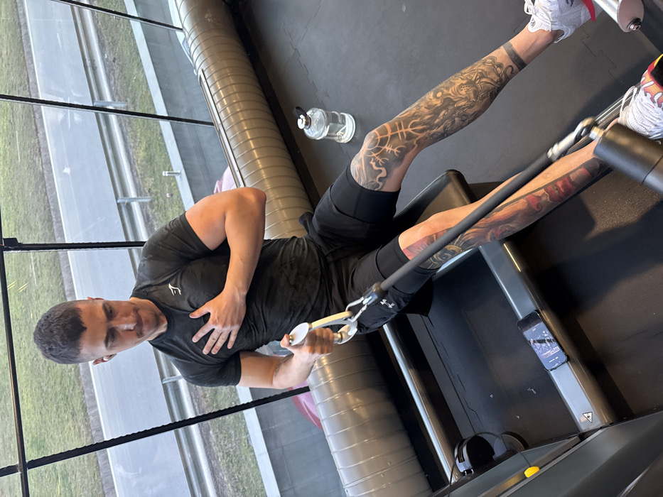 - "An adult male, estimated to be in his mid-20s to early 30s, is seated on a cable rowing machine within a gymnasium" by FM-GT16t1, licensed under CC BY 4.0