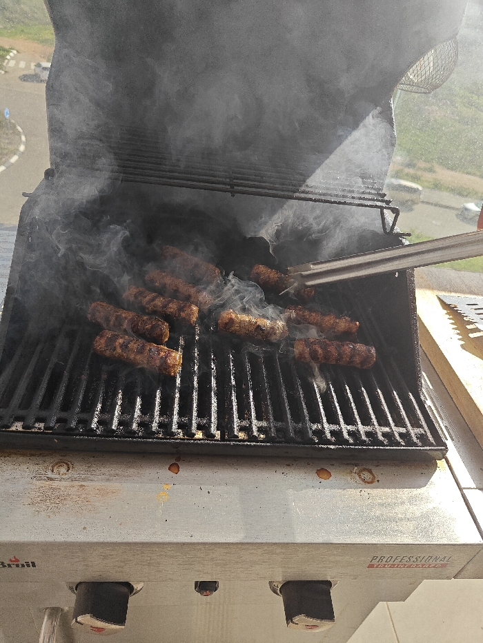 The image captures an outdoor grilling scene, reportedly in Karmiel, Israel