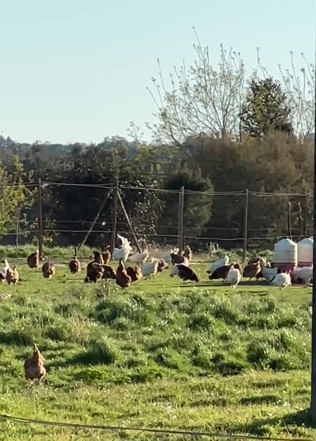 - "The camera slowly pans across a field of green grass containing a flock of chickens" by FM-EXOi83, licensed under CC BY 4.0