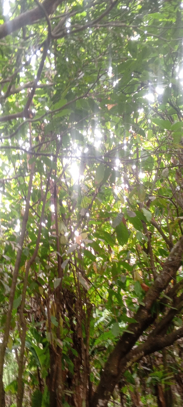 A dense canopy of green leaves filters sunlight