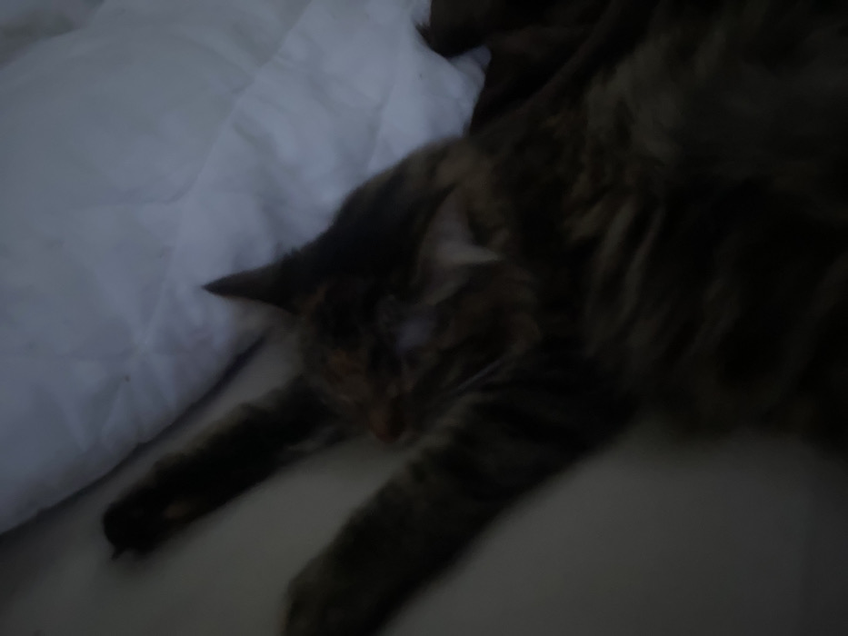 - "An underexposed and blurry photograph captures an indoor scene featuring a domestic cat" by FM-Aryqt1, licensed under CC BY 4.0
