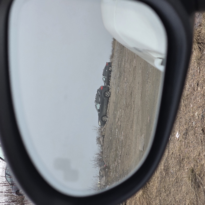 - "The image displays a scene reflected in a vehicle's passenger-side mirror, framed by its black casing" by FM-Uibel2, licensed under CC BY 4.0