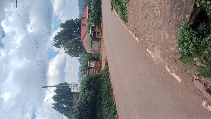 This image depicts a semi-urban roadside scene in Kisii, Kenya, under a partially overcast sky