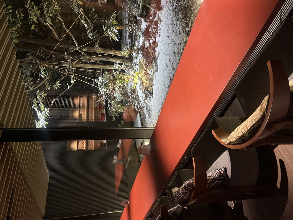 - "The image displays an interior view of a modern establishment in Kanazawa, Japan, looking out into a snow-covered garden through a large, full-length window" by FM-cZmHk1, licensed under CC BY 4.0