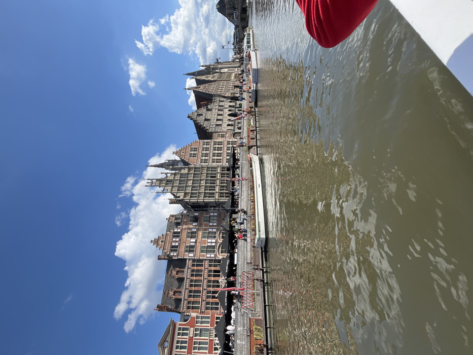 - "The image presents a sunlit scene along the Leie river in Ghent, Belgium, specifically capturing the historic Graslei" by FM-NQrs03, licensed under CC BY 4.0