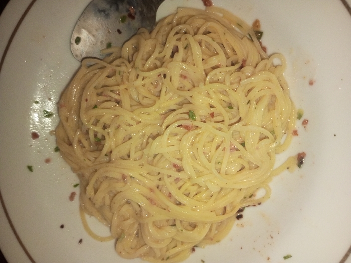 - "A plate of spaghetti sits with a serving spoon nestled among the noodles" by FM-35CeU2, licensed under CC BY 4.0