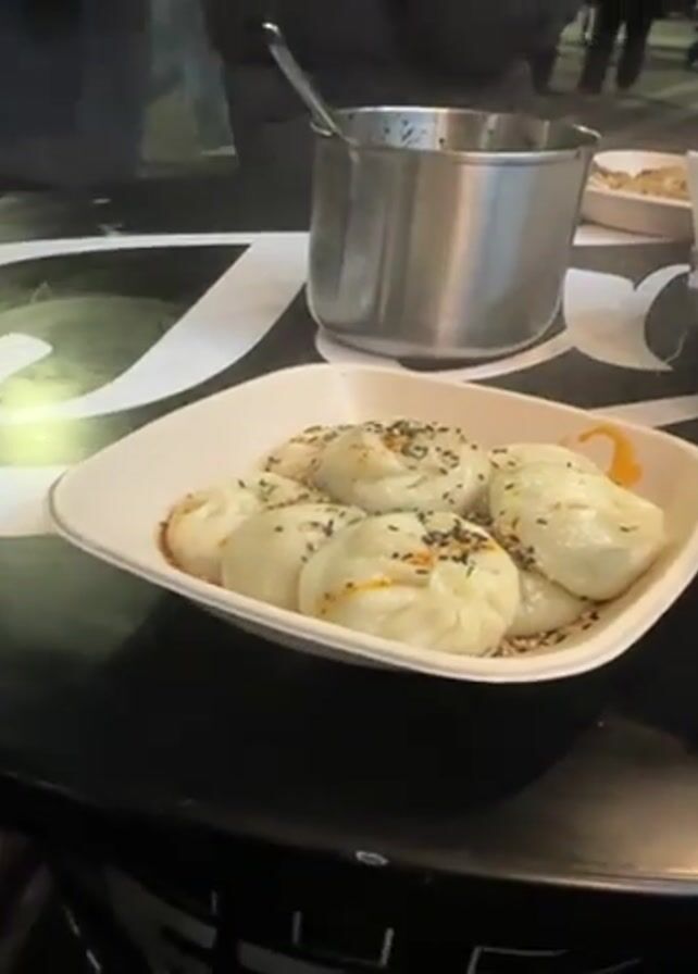 - "plate of dumplings covered in sauce and sesame seeds on a black and white table" by FM-n6yWE2, licensed under CC BY 4.0