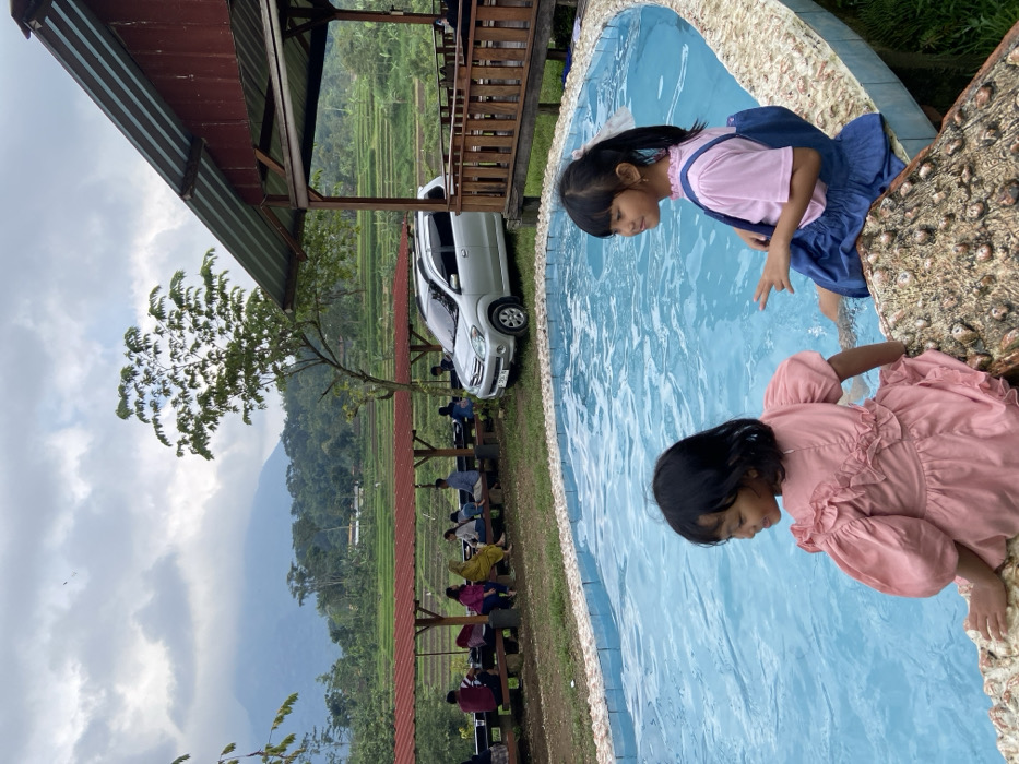 - "This image depicts an outdoor leisure area in Penanggungan, Indonesia, situated against a backdrop of terraced rice fields and lush mountains under an overcast sky" by FM-htxI33, licensed under CC BY 4.0