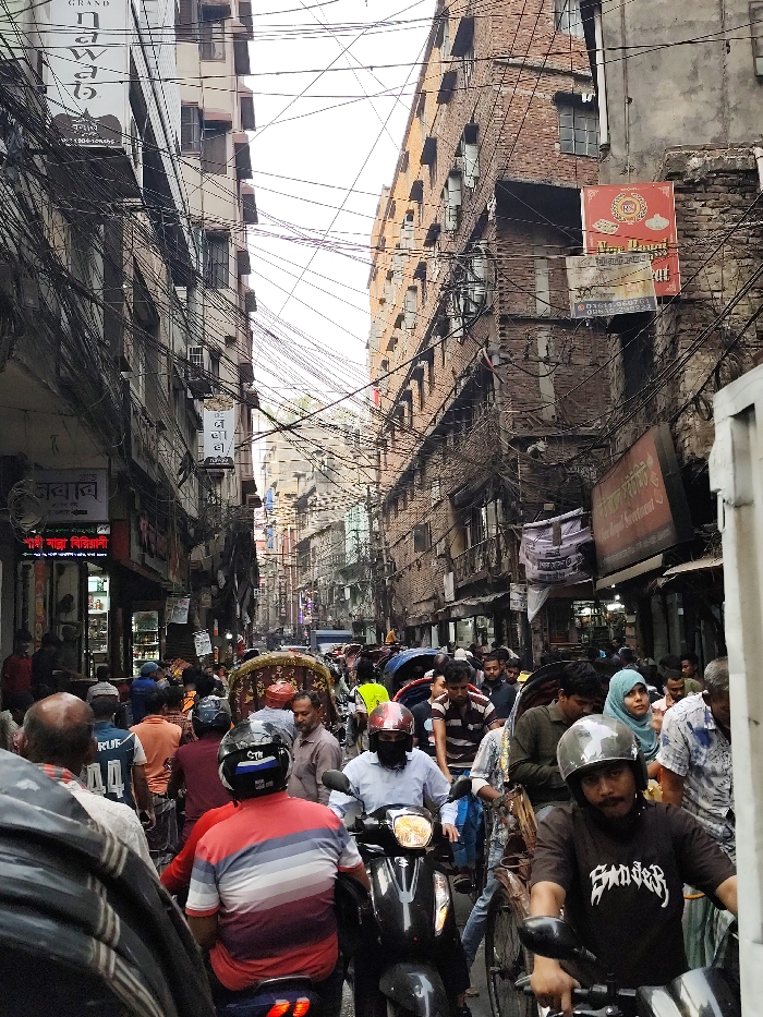 - "The image displays a severely congested street in the New Market area of Dhaka, Bangladesh, under an overcast sky" by FM-UkFMa2, licensed under CC BY 4.0