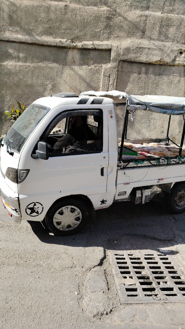 - "The scene depicts a white compact pickup truck parked on an uneven asphalt surface in Al-Qaboun Municipality, Syria" by FM-YWUCQ2, licensed under CC BY 4.0