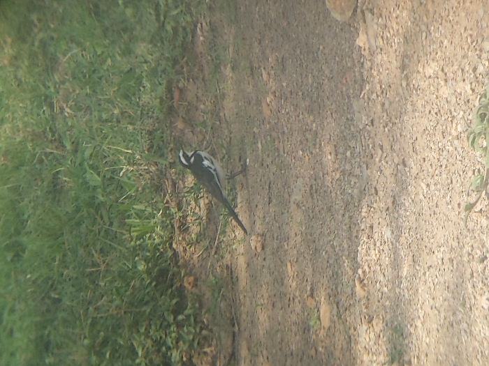 - "An African Pied Wagtail (Motacilla aguimp) stands in profile on a light brown dirt and gravel patch" by FM-U5DpA2, licensed under CC BY 4.0
