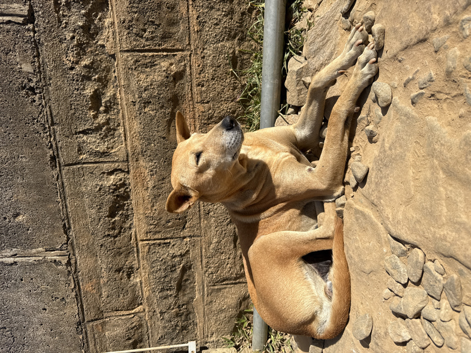 - "A light brown dog lies contorted on cracked, rocky ground near a gray metal pole" by FM-PAcZC3, licensed under CC BY 4.0