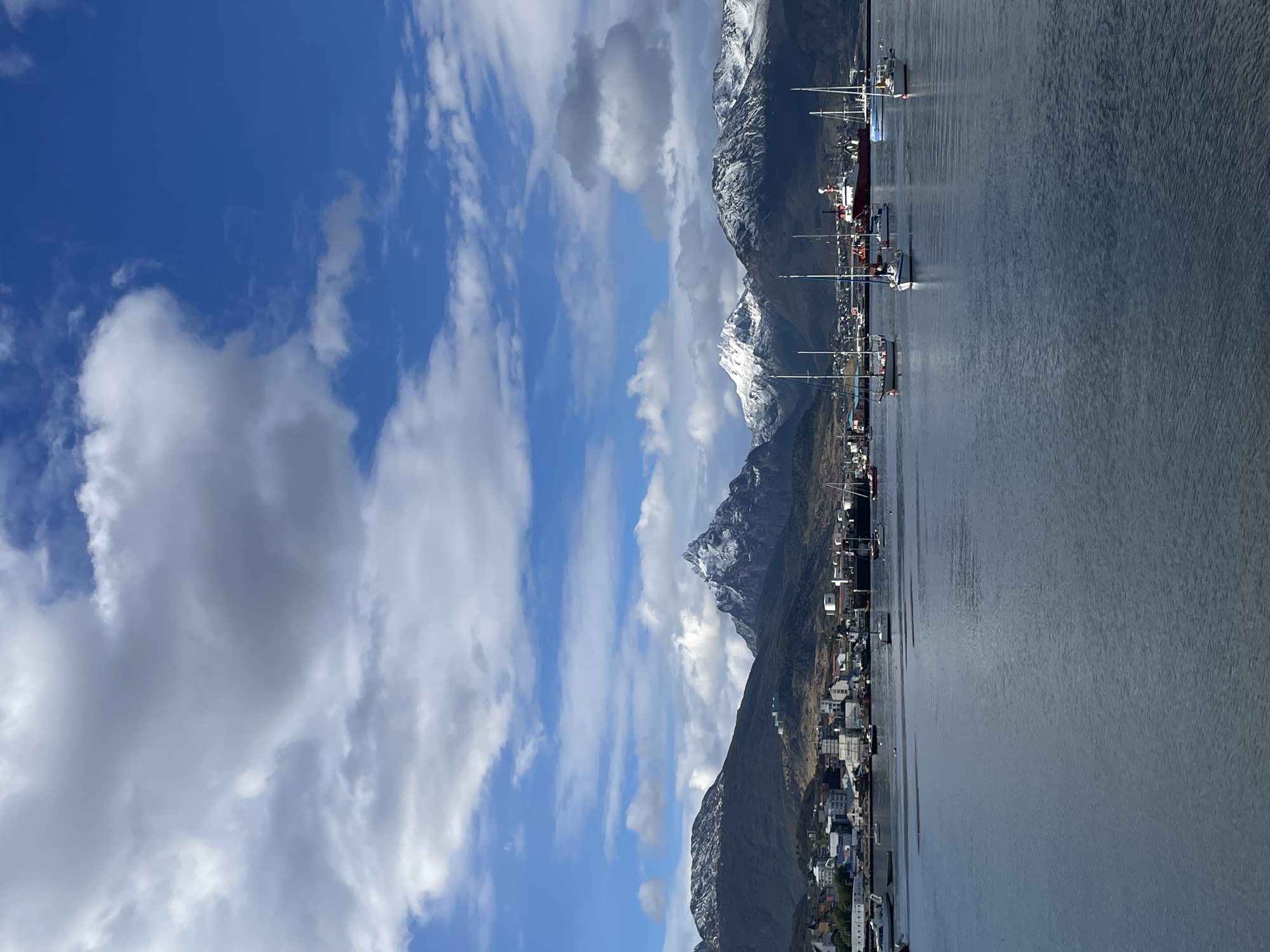 - "The image depicts the city of Ushuaia, Argentina, situated along a body of water, likely the Beagle Channel or its bay, against a backdrop of the snow-capped Andes Mountains under a partly cloudy sky" by FM-S01i13, licensed under CC BY 4.0