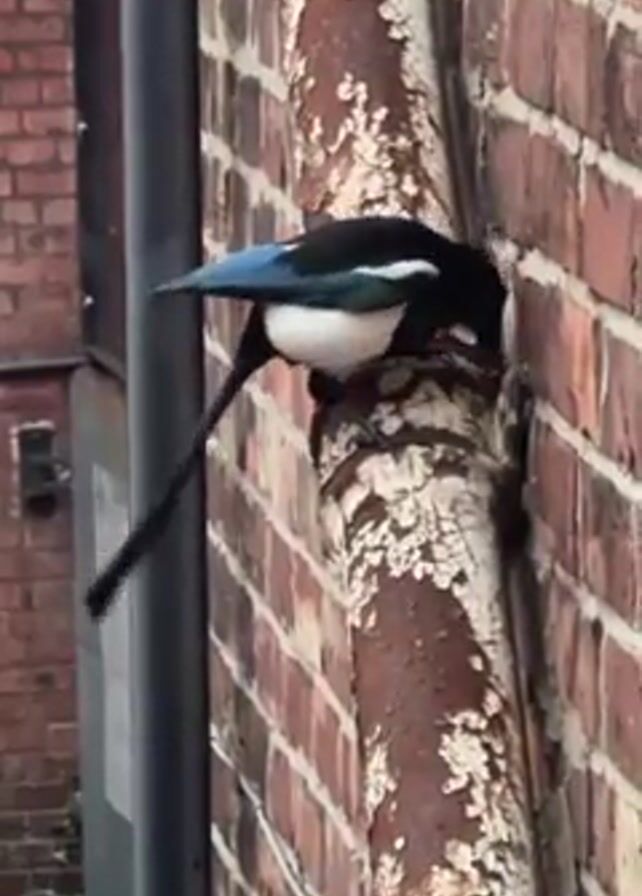 - "A magpie perches on a rusty, flaking pipe against a brick wall" by FM-8cv9p2, licensed under CC BY 4.0