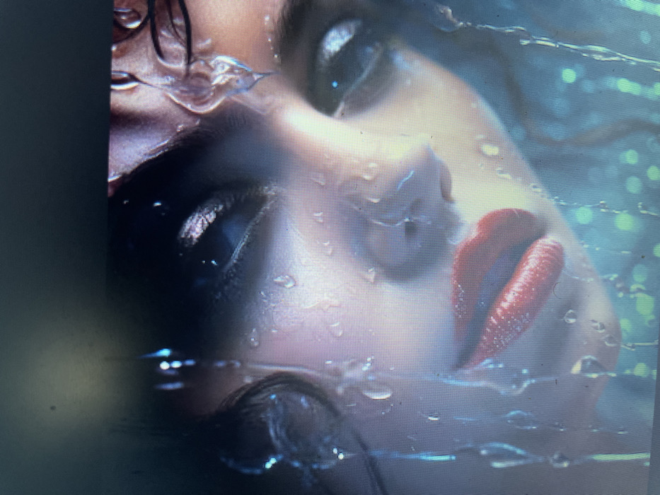 - "The close-up, artistic portrait showcases a woman's face, partially obscured by water droplets" by FM-GLrsb2, licensed under CC BY 4.0