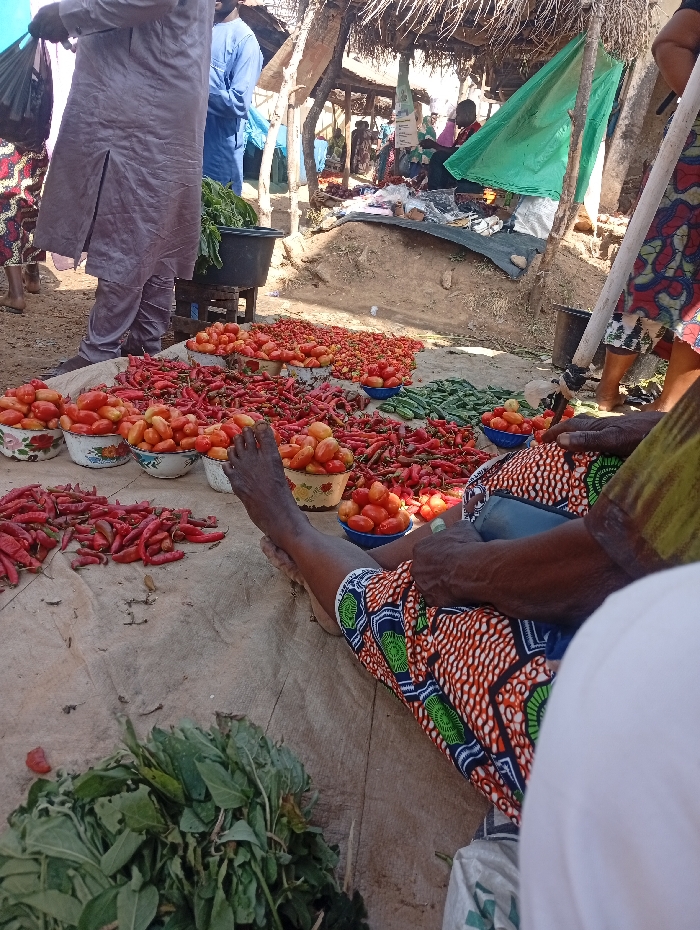 This image depicts an outdoor market scene in Wamba, Nigeria