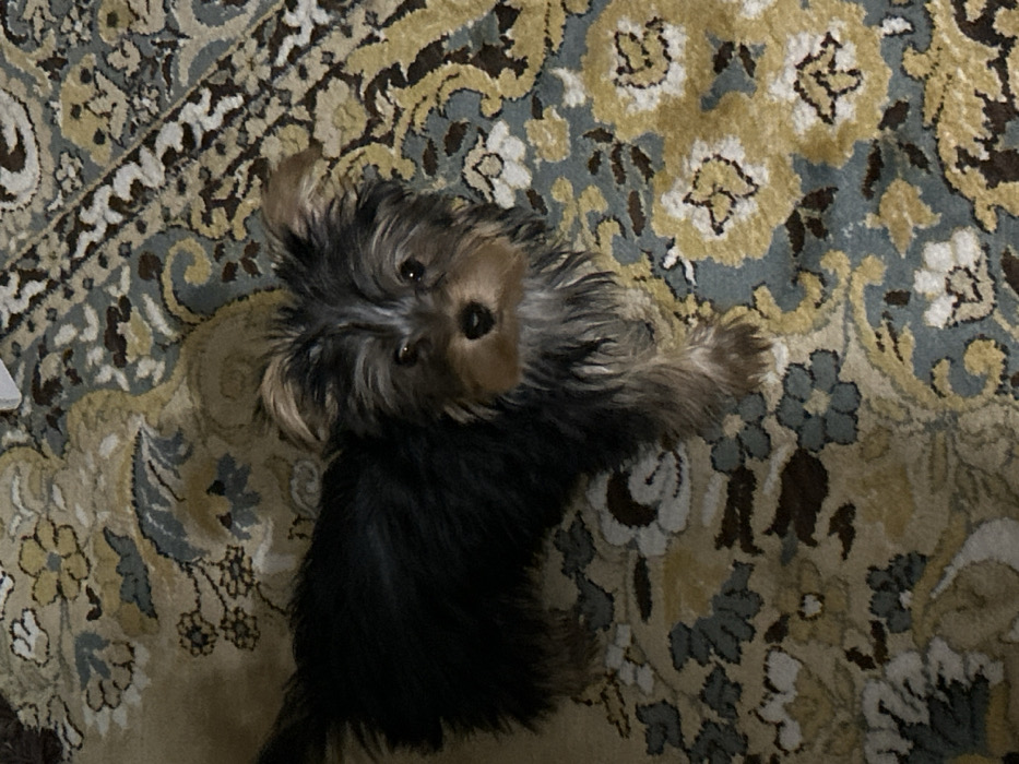 - "The image displays a Yorkshire Terrier dog standing on a patterned rug within an interior setting in Silistra, Bulgaria" by FM-ZTQZg2, licensed under CC BY 4.0