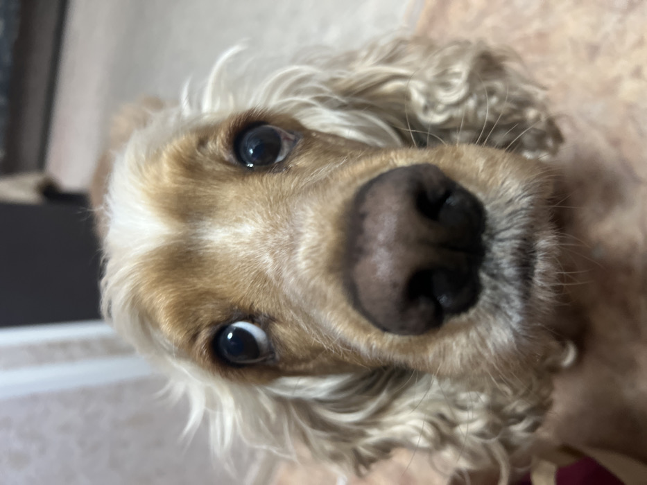 - "A close-up photograph captured in Chaikovsky, Russia, depicts the head of a domestic dog, likely an English Cocker Spaniel, positioned centrally and looking directly at the camera" by FM-wtnVo2, licensed under CC BY 4.0